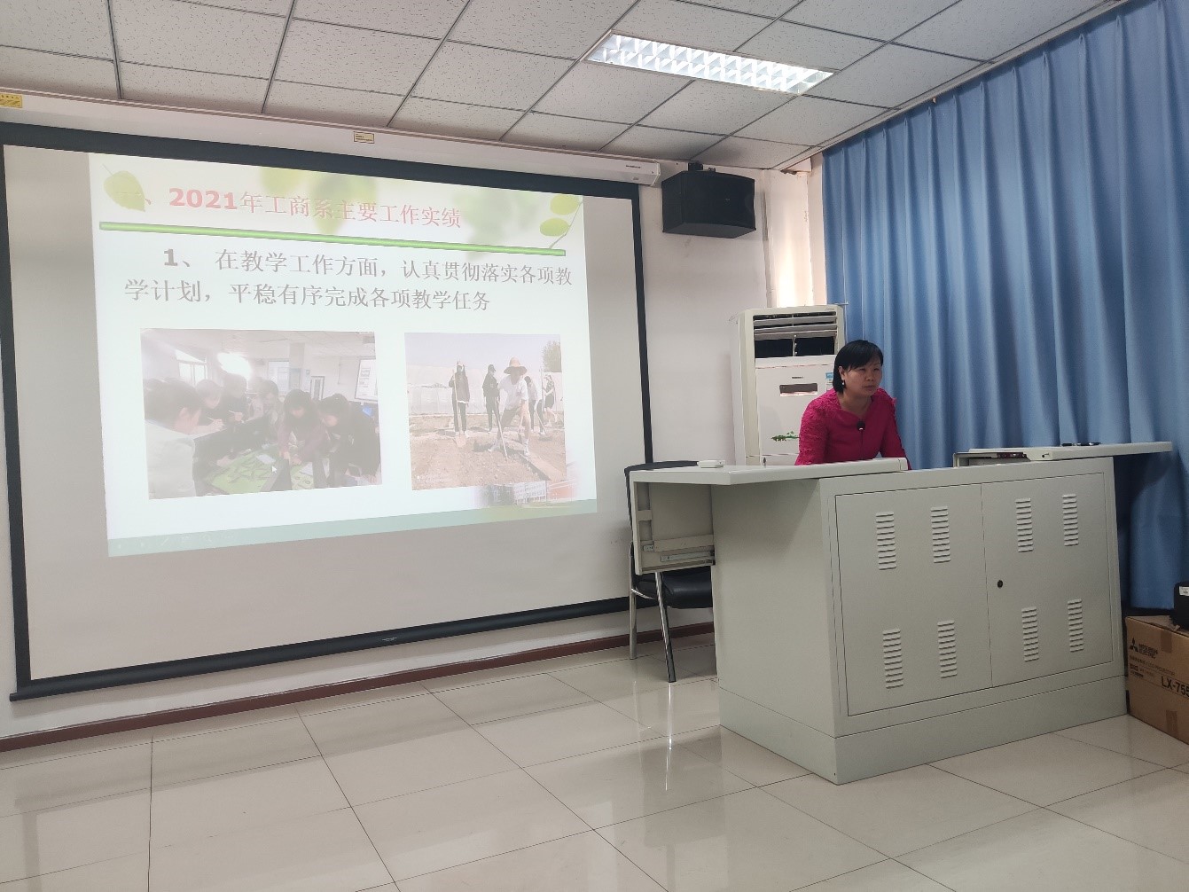 系主任赵海燕、何伟、桂琳、张宁,分别对本系2021年工作进行了总结,并提出了2022年发展计划。