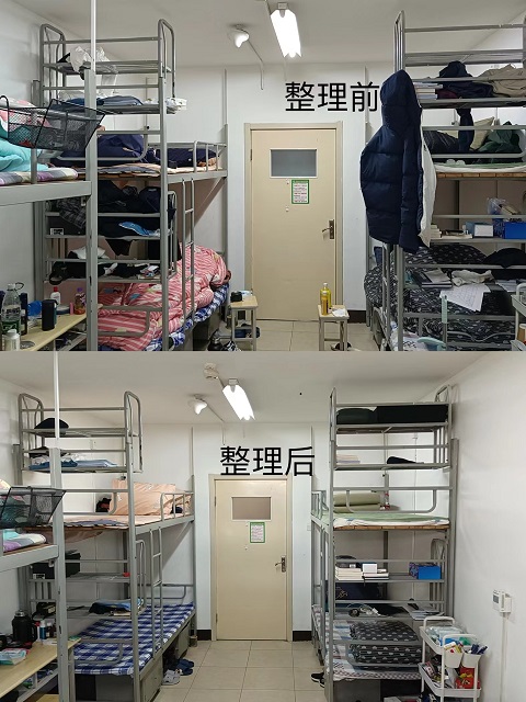 各学生宿舍在宿舍长的带领下开展了宿舍大扫除,同学们分工明确,协作互助,通过自己的不懈努力,使宿舍环境焕然一新。