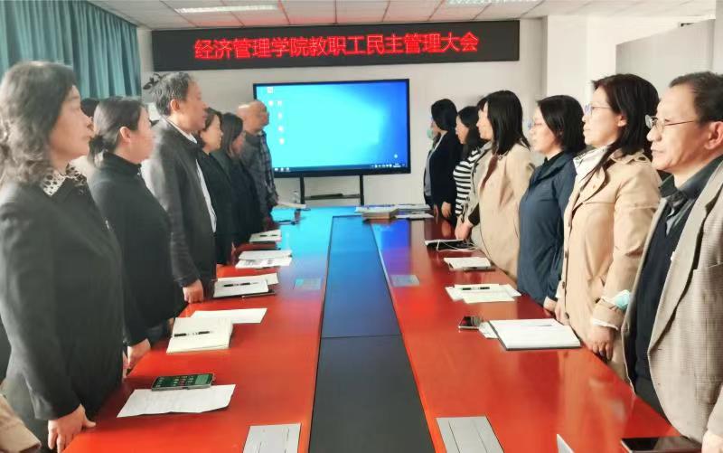 全体教职工在经管楼401召开了2022年教职工民主管理大会。