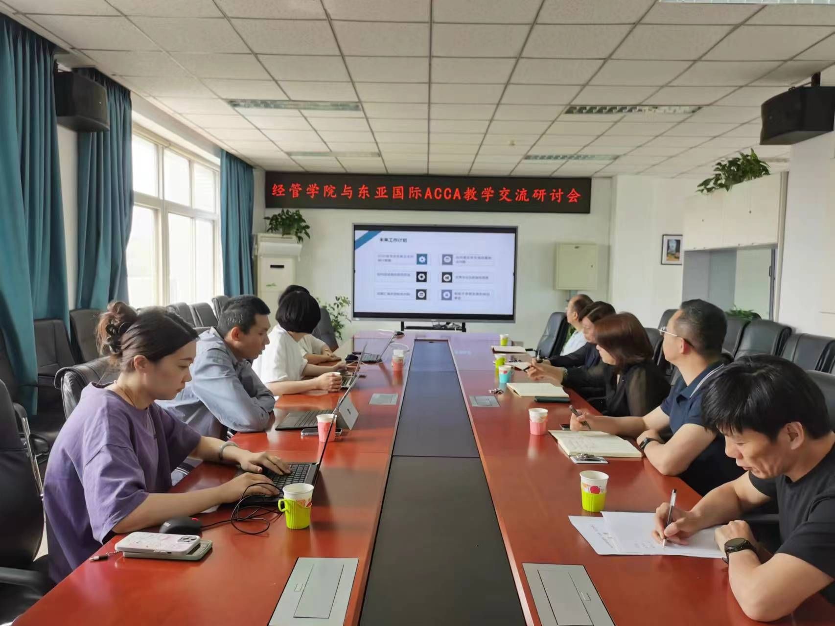 东亚国际介绍了会计学ACCA实验班办学特色与办学成果。双方围绕实验班招生、课程内容、备考策略、学习奖励、未来工作计划等方面进行讨论,并提出具体可行的方案与措施。