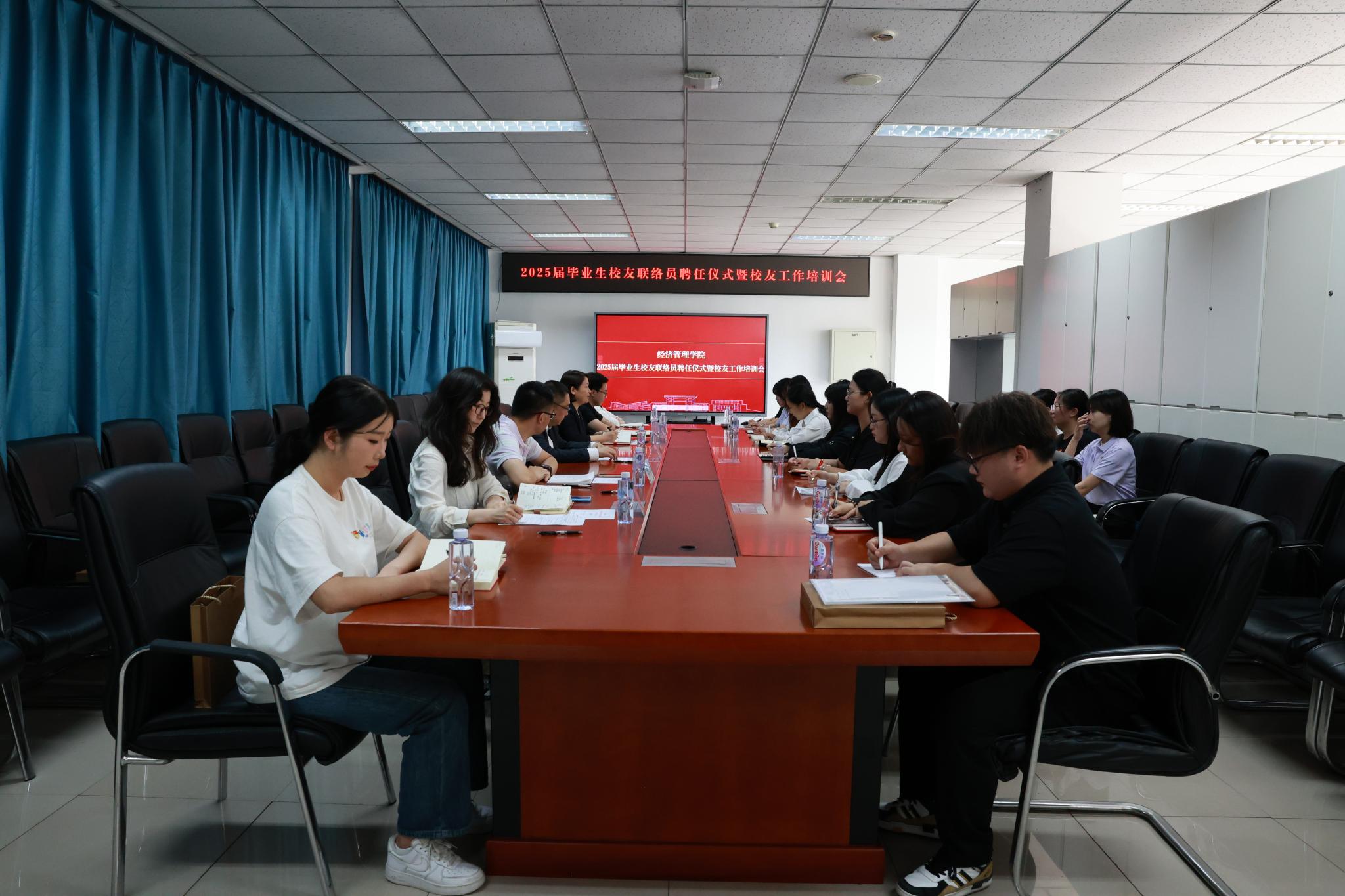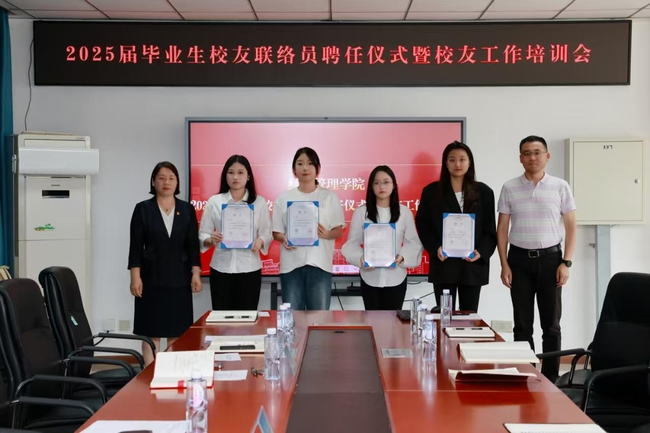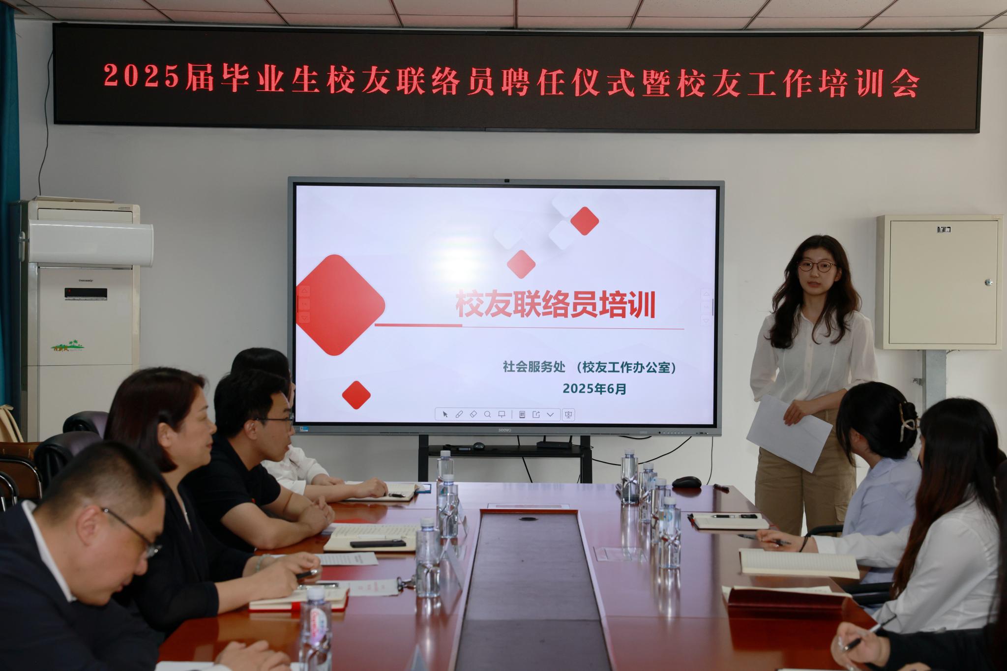 举办2025届毕业生校友联络员聘任仪式暨校友工作培训会。学校党委副书记郑品石参加活动并讲话。博彩公司排行榜党委书记刘芳,社会服务处副处长陈勇,社会服务处干部赵瑞一,毕业班辅导员及2025届全体毕业生校友联络员参与活动。会议由博彩公司排行榜学生工作负责人杨刚主持。