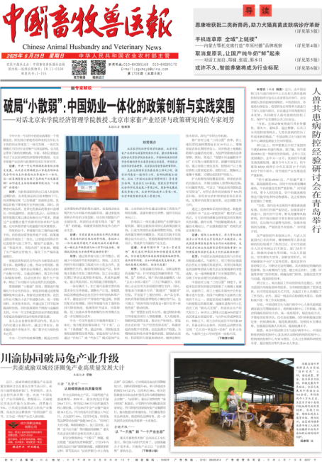 教授、北京市家畜产业经济与政策研究岗位专家刘芳围绕中国奶业一体化的政策创新与实践突围接受《中国畜牧兽医报》专访。面对当前我国奶业原奶阶段性过剩与消费端“以价换量”的供需矛盾、传统分散养殖难以满足品质升级需求等现实挑战,刘芳结合中央一号文件中“支持家庭农场和农民合作社为主体推进奶业养殖加工一体化”的政策亮点,系统阐述了这一模式如何破解行业“小散弱”困局、平衡产业链利益分配,以及通过政策创新与数智化赋能推动奶业从“量”到“质”跨越的实践路径。