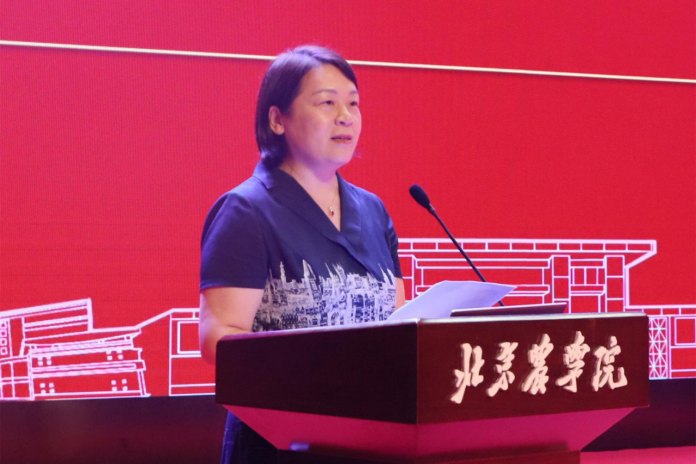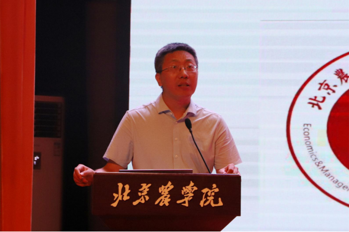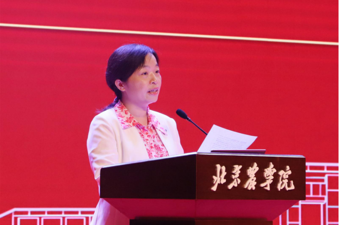 教师代表赵海燕教授发言。她以“爱国、求真、坚持、合作”为核心,鼓励新生探索“三农”实践,在学术探索中“从社会现象中探寻规律”,以“坚持不懈之毅力”成就自我。