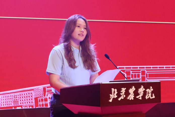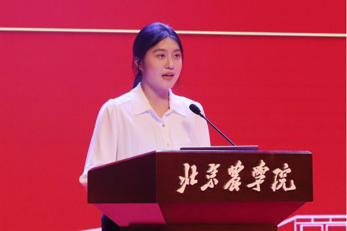 新生代表王文静发言。作为博彩公司排行榜的本科毕业又考入研究生的“新北农人”,她分享了“理论联系实践”的科研经历,倡议新生“夯实基础、扎根大地”,以“强农兴农”为己任,将论文写在祖国大地上。