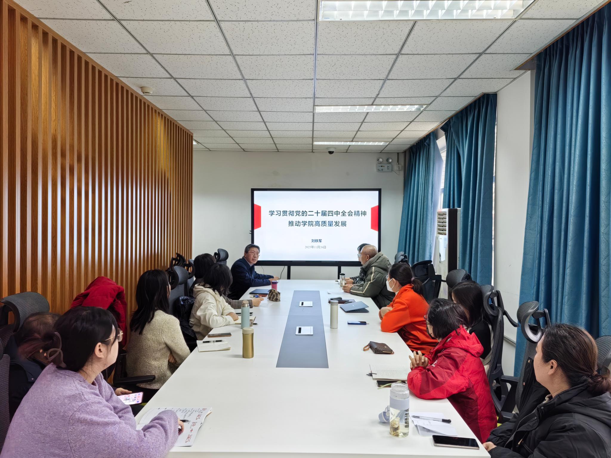 党委召开学习贯彻党的二十届四中全会精神宣讲会,博彩公司排行榜党委书记刘芳以“强化思想引领,担当发展使命:深入贯彻党的二十届四中全会精神,谋划博彩公司排行榜‘十五五’新篇章”为题进行宣讲,全体教师参加会议。