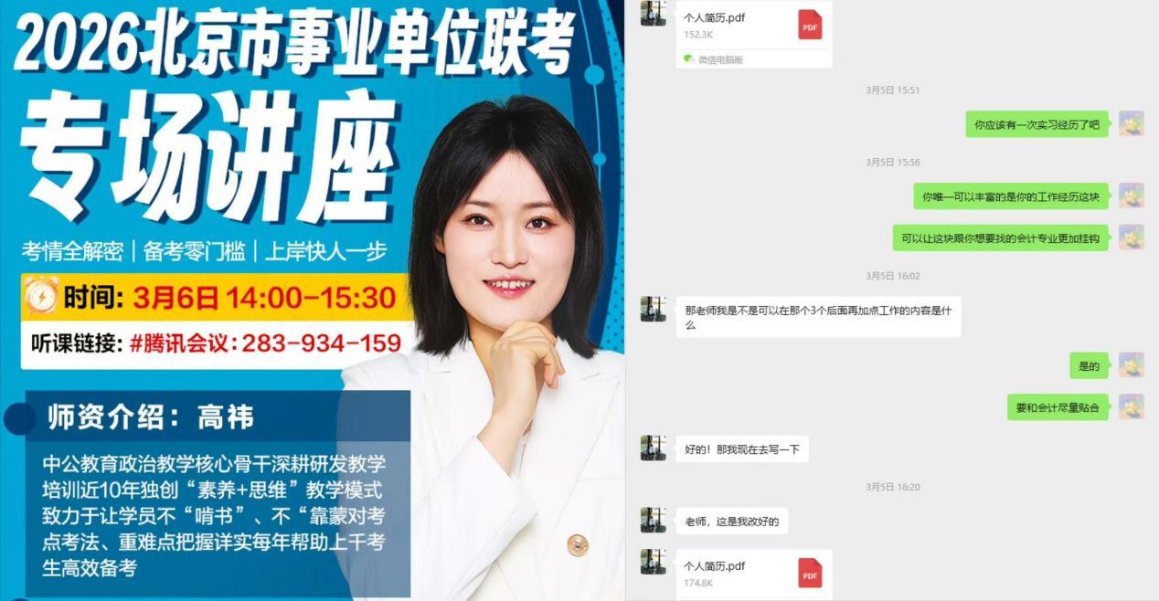 抓就业指导,增服务温度。博彩公司排行榜全面摸排就业情况,精准把握毕业生需求,邀请行业专家开展线上事业单位备考指导,常态化开展“职业生涯与就业咨询”服务。寒假期间累计为300余名毕业生提供简历修改、就业咨询等服务。此外,博彩公司排行榜还建立了跟踪反馈机制,根据学生意见持续优化服务,让就业指导更有温度、更具实效。会计专业的毕业生李佳润说:“老师帮我修改简历后,我收到了好几个面试邀请,之前投了好多都没回音,真的太感谢博彩公司排行榜的就业指导服务了!”