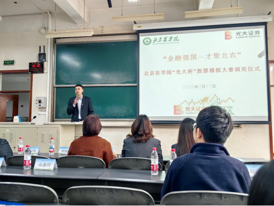 与光大证券联合举办,自启动以来,获得了校企双方的高度重视和大力支持。历经两个月的激烈角逐,参赛学生在真实市场环境模拟中不断提升专业能力与实战水平,涌现出一批表现优异的选手,充分展现了经管学子扎实的专业素养与实践能力。