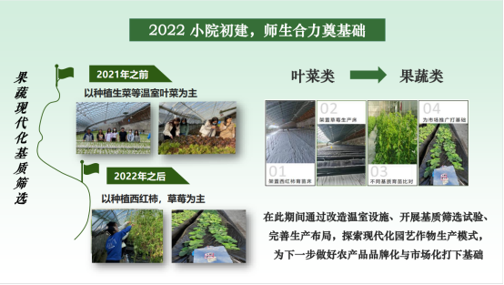 科技小院初建时,当地温室以叶菜种植为主,附加值低、竞争力弱,设施条件还尚薄弱。刘笑冰老师带领学生转向西红柿、草莓等高效经济作物,反复试验定制型栽培基质配方,获批多项国家发明专利,探索出适地高效的现代化园艺作物生产模式。2023年,面对小院低质林地还耕复垦难题,她带领学生调研土壤状况、谋划三产融合路径,鼓励学生以实际需求为毕业论文研究方向,在实践中深化对“绿水青山就是金山银山”的理解。2024年,小院迈入产学研融合快车道。刘笑冰教授带领学生考察调研、试验新型绿色低碳基质,成功打造鲜食玉米特色品牌,引导学生聚焦产业痛点和消费者需求开展研究,让科研成果服务产业发展。2025年,团队聚焦科技小院“原味一号”西红柿提质增效、品牌建设和市场潜力研究,针对其优质难优价的瓶颈,优化栽培基质配方,开展消费者调研,重塑客户画像,提升产品供需匹配度,构建品牌体系,拓展社区团购、直播带货等多元渠道,相关研究为产业发展提供科学决策依据。