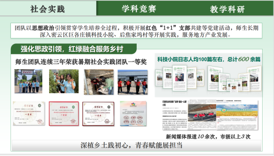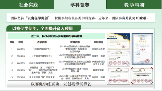 刘笑冰老师始终坚信,育人不仅是知识的传递,更是能力的点燃与人格的塑造。她致力于推动教育理念从“授人以鱼”转向“授人以渔”,从手把手带学生,到教会学生自主成长,让他们实现从懵懂尝试到能力提升的跨越。她将广袤的乡屯田间与火热的学科竞赛、社会实践活动,精心构筑为学生锤炼真知、探索未知的“渔场”,赋予他们独立探索的“渔具”,引导他们在知行合一中,将青春和汗水书写在服务国家社会与乡村振兴的广阔天地间。在她执教期间,此理念已化为丰硕的育人实绩,带领团队长期扎根乡土,2023—2025年学生团队连续三年荣获校级“首都大学生暑期社会实践优秀团队”一等奖,2025年获评“首都高校师生服务乡村振兴行动计划成果”一等奖,2024、2025年获评“青年服务国家”首都大学生暑期社会实践优秀团队、先进个人等,实践活动成果被《人民日报》、全国农科研究生志愿服务联盟等媒体报道10余次。她以学科竞赛为砺金石,以赛促学促创,全面提升育人质量,近年来学生参加各级学科竞赛并获得全国高校商业精英挑战赛品牌策划竞赛全国总决赛一等奖、全国大学生“创新、创意及创业”北京赛区一等奖等奖项10余项。此外,团队学生也多次参加学术会议,进行学术汇报和成果展示。