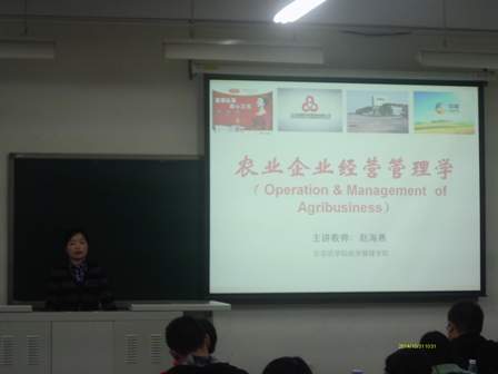 《农业企业经营管理学》是北京市精品课程。近年来,在课程负责人何忠伟老师和系主任陈娆老师的带领组织下,整个教学团队积极摸索,认真思考,广泛调研,夯实 “3+1”骨干课程改革精神,推出了DIY Teaching、双语教学、讨论式教学和影视教学等多种教学改革举措,并取得了一定的教学成绩和效果。