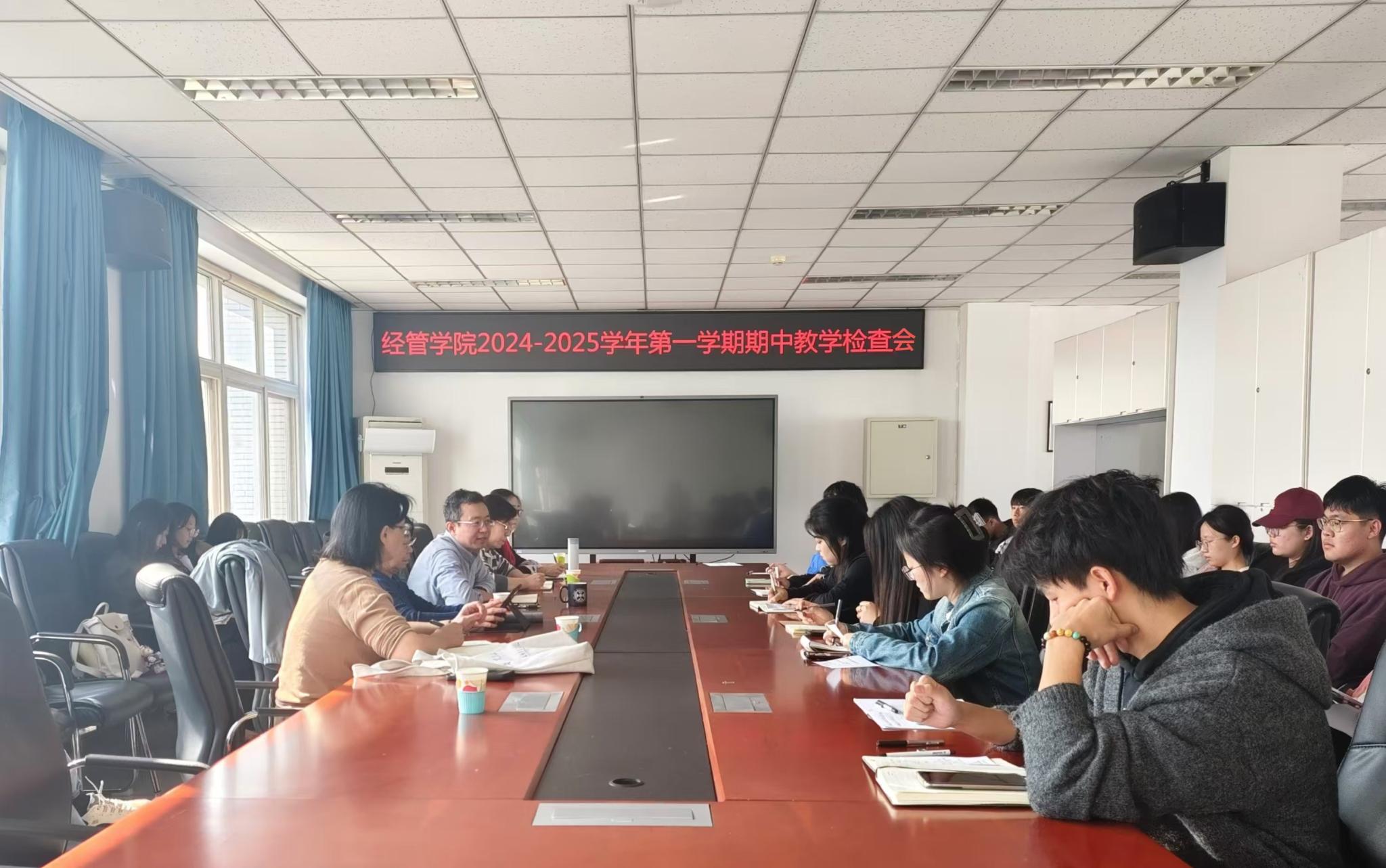 于11月14日中午在经管楼401会议室举行2024-2025年度第一学期期中教学师生座谈会。教学副院长、教学督导、各系主任及学生代表参加会议。座谈会由副院长徐广才主持。