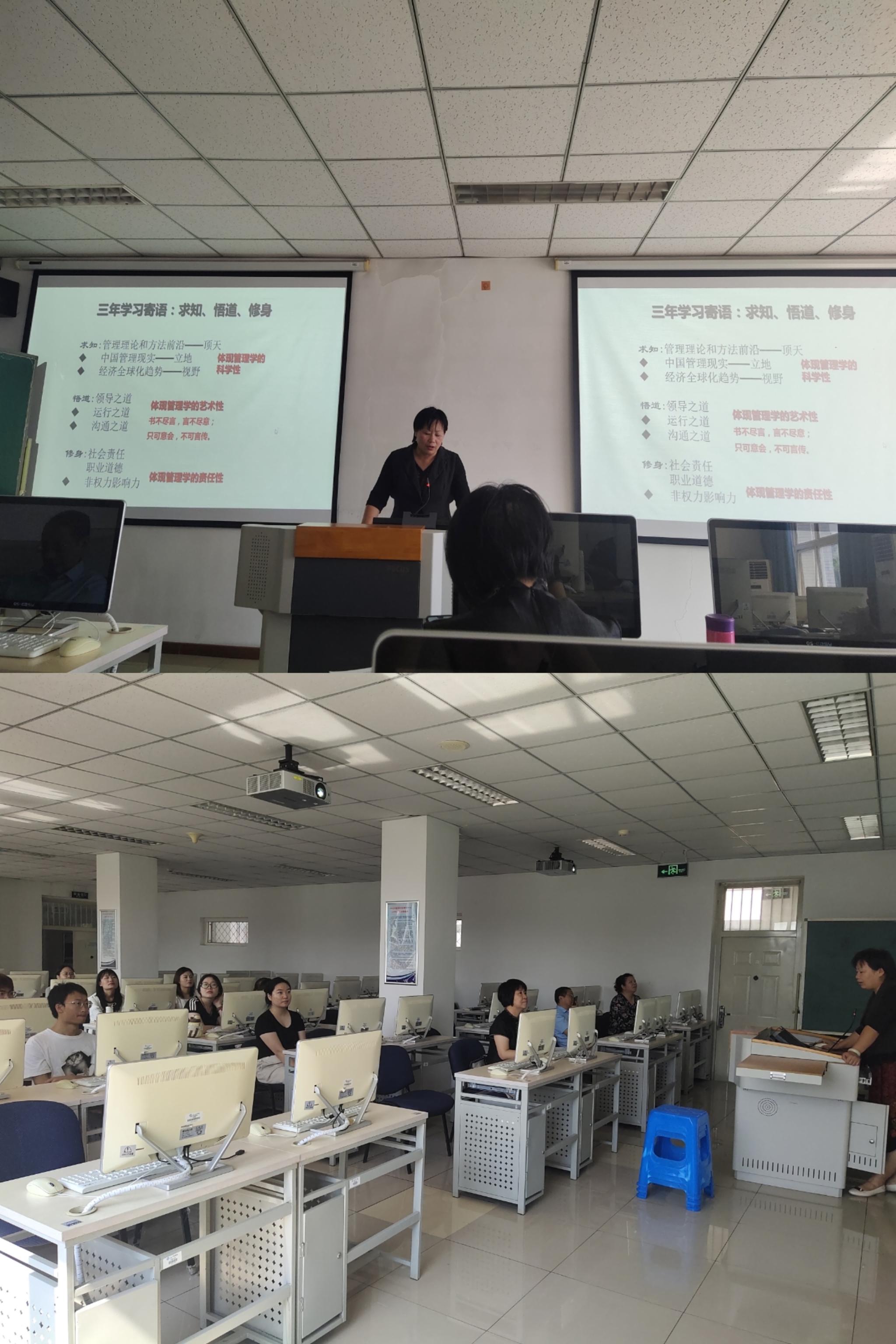 大家庭,并针对工商管理专业学术学位硕士进行了专业以及培养方案介绍,包括培养年限和培养方式、课程学习、实践实训、毕业论文工作、毕业与学位授予等主要培养环节。随后,她进一步强调了工商管理专业在当今复杂多变的商业环境中的重要性,以及学校在该领域的教学与研究优势。导师们还与研究生们广泛交流并深度剖析了工商管理领域的最新趋势与挑战,强调了学术研究与实践能力并重的人才培养理念。通过此次会议,同学们深入了解了课程设置、师资力量及就业前景,激发了浓厚的学术兴趣与职业憧憬,不仅搭建了师生交流平台,更为即将踏入工商管理研究殿堂的学子们点亮了前行的灯塔。