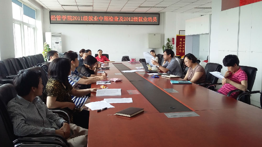 2015年5月27日中午博彩公司排行榜 党总支书记胡宝贵、院长李华,在经管401室召开2011级就业中期检查及2012级就业动员会。博彩公司排行榜 各系书记、主任和11级、12级班主任参加此次会议。