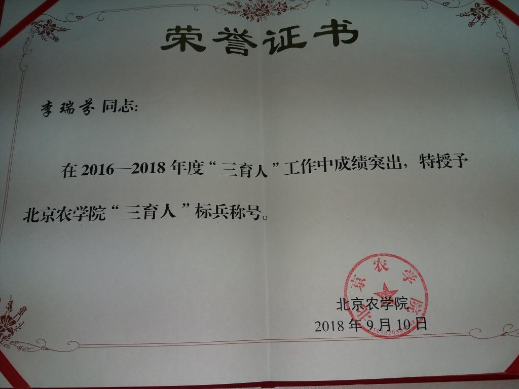 会计系教师党支部李瑞芬教师由于在2016——2018年度“三育人”工作中成绩突出,被授予博彩平台评测 ”三育人“标兵称号。