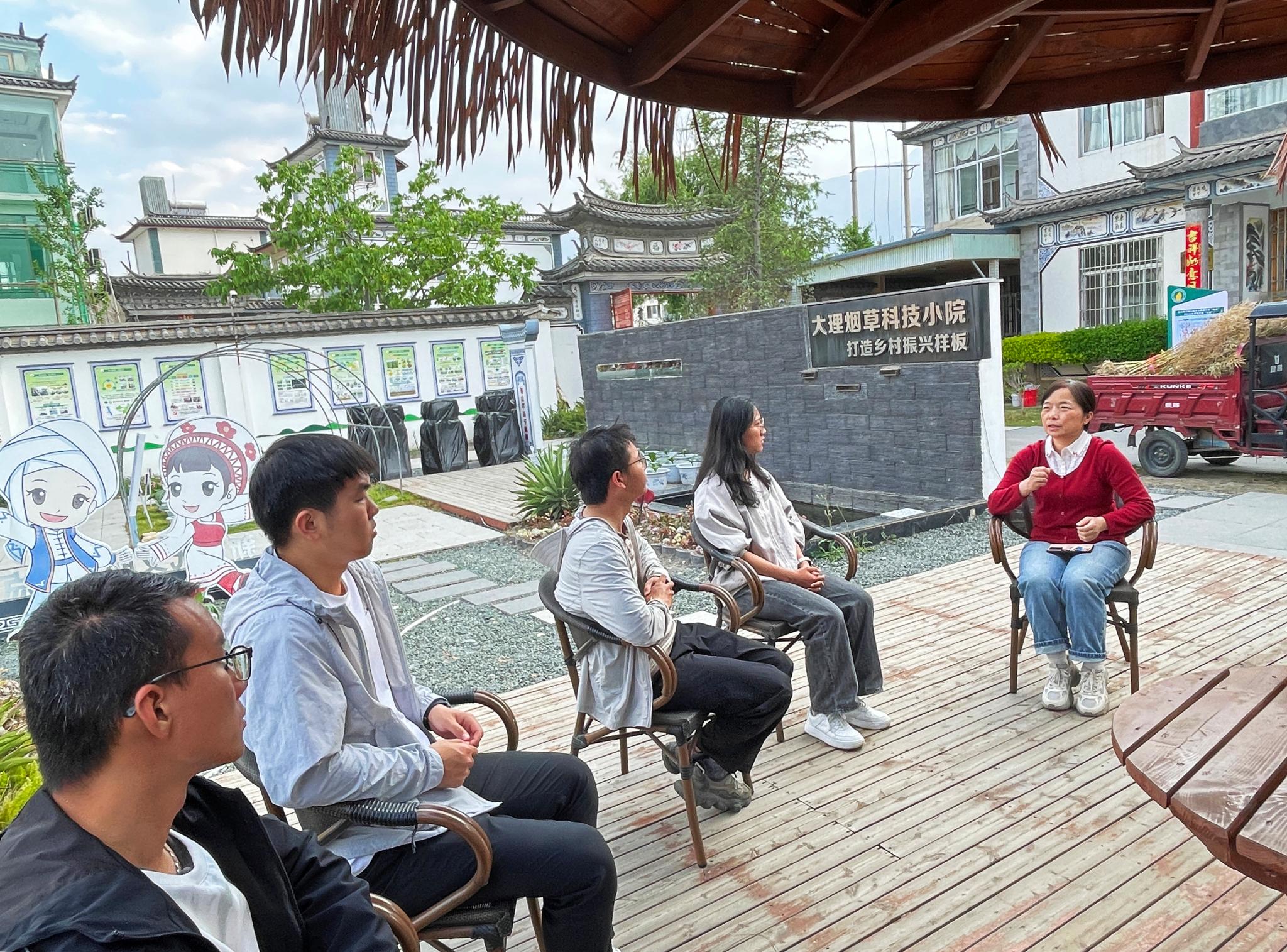 师生团队将课堂搬到田间,先后走访调研了古生村农户以及绿色高值种植科技小院、洱海流域面源精控科技小院、洱海水稻科技小院、云天化绿色智能肥料科技小院、大理烟草科技小院、大庄蔬菜科技小院,就科技研发、科技推广、全产业链运营、市场销售、政策支持、人才培养等进行了深度访谈和交流。